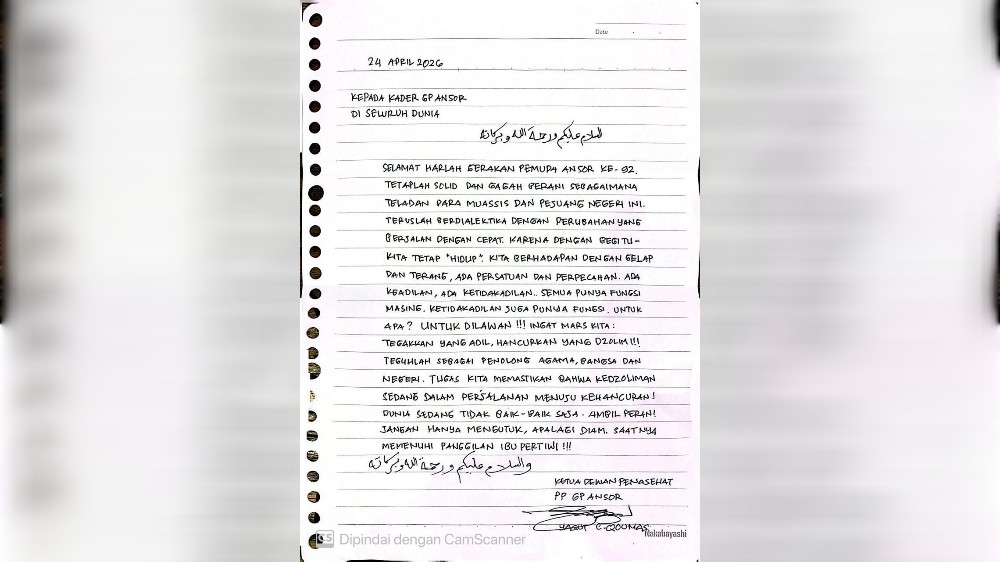 Surat ini kini menjadi pemantik semangat bagi para kader di tengah situasi sulit yang menimpa pimpinan mereka, sekaligus menjadi penegas posisi GP Ansor dalam menghadapi dinamika hukum dan politik nasional.